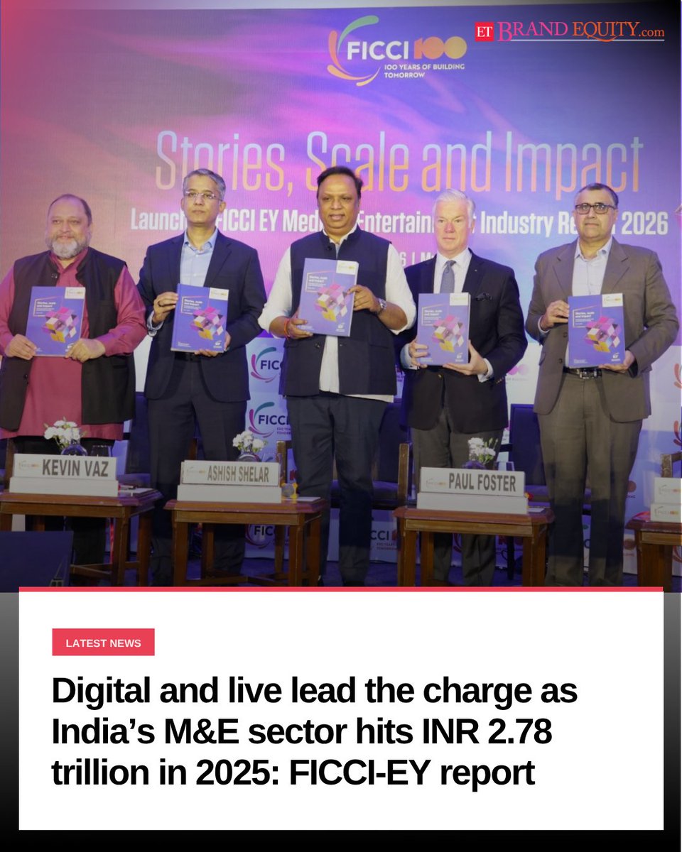 India's media and entertainment sector has crossed INR 2.78 trillion. Digital media is now the largest segment, fueled by advertising growth. Live events and films also saw significant revenue increases. #ETBrandEquity #MediaIndustry #EntertainmentIndustry #DigitalMedia
