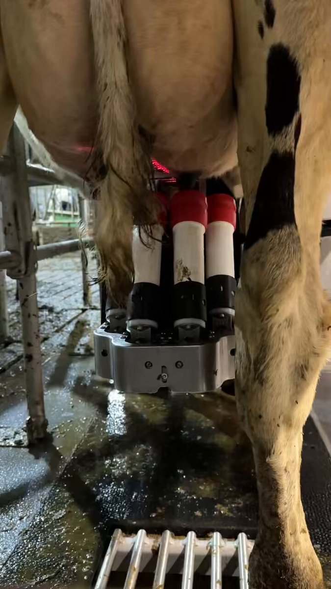 Zoals beloofd even wat beelden en uitleg van de (nieuwe) melkrobot. Live is het nu heel prima te zien hoe zo'n robot werkt. Met mijn beperkte camera mogelijkheden valt het echter tegen. Ik hoop dat t duidelijk genoeg is. Draadje. 👇