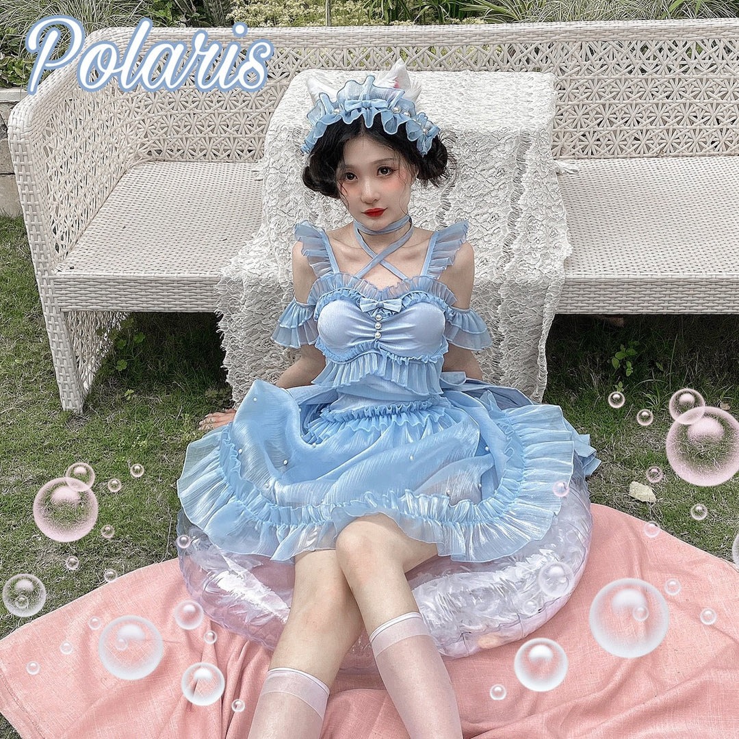"Polaris Lolita~Mermaid~Lolita Inspired Swimsuit with Tulle Overlay and Trailing" Darling, this mermaid swimsuit's detachable sleeves let you switch from poolside princess to ocean siren in seconds! ✨👙 Purchase link: 42lolita.com/collections/20… #Swimwear #MermaidCore
