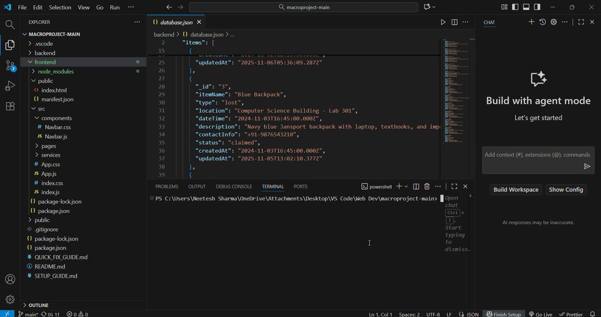 Just completed my macro project — Lost & Found Web Portal for MITS Students Built using #MERNStack to help students easily report & recover lost items on campus. A step toward a smarter, more connected campus!