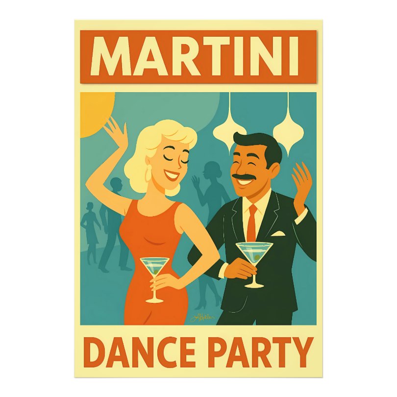 💃🕺🎉🍸🎉🕺💃 Mid Century 50s 60s Martini Dance Party #wallart #poster Item: zazzle.com/mid_century_ma… #midcentury #MidCenturyModern #martini #Cocktails #cocktailhour #barware #gifts #giftideas #Mothersday #FathersDay Dance Party Collection: zazzle.com/collections/11…