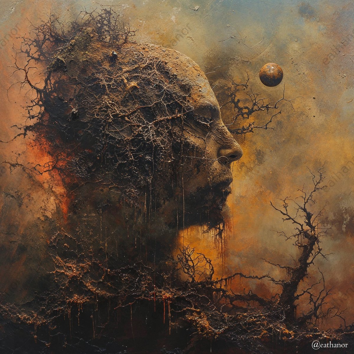 ~ Roots of the Mind ~ Good night, everyone! 🌙✨ May your dreams be as deep and mysterious as the art we share. Sleep well! 🖤 #midjourneyart #aiartcommunity #stablediffusion#SurrealArt #Mindscape #AbstractExpressionism #DarkArt