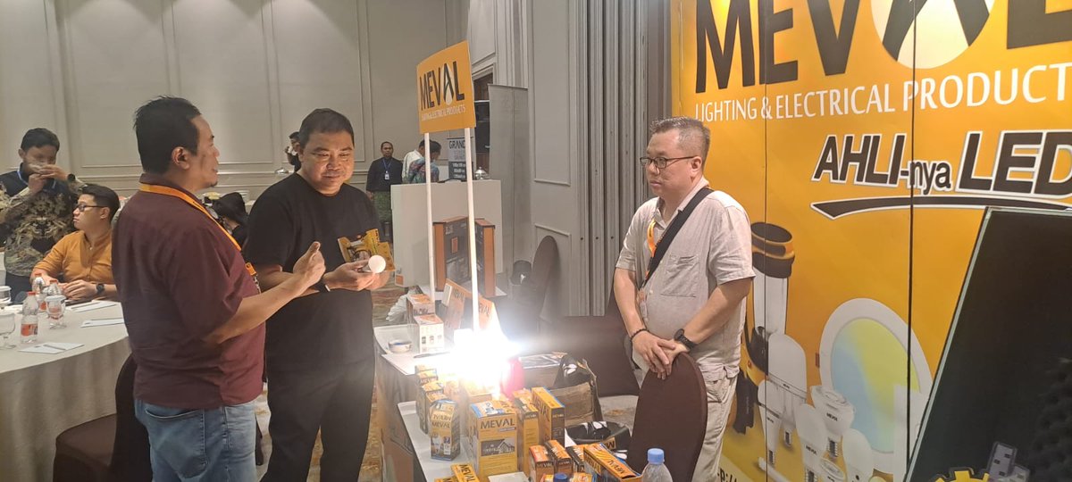 Beberapa peserta yang sedang menghampiri booth Meval dalam acara Architect Meet and Talk (13 Juli 2023) dengan tema Smart Living Design di Mata Pengembang dan Arsitek. #mitrameval #ahlinyaLED