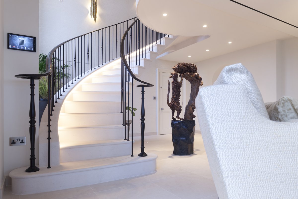 Stunning #Staircase at our project from @Ian_Knapper #cantilever #moleanoslimestone #interiordesign #cheshire