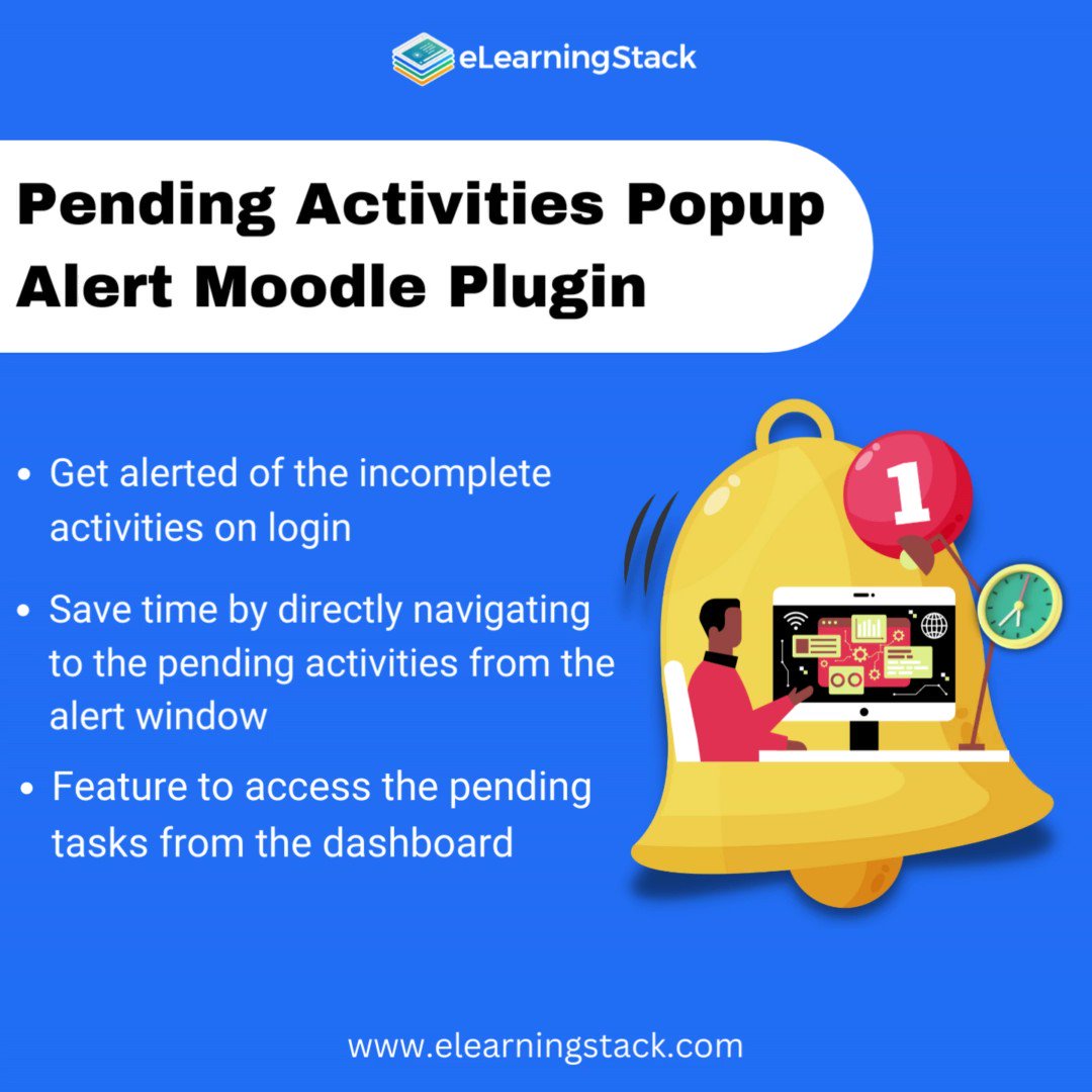 🔔 Now receive notifications for your pending activities directly on the dashboard with the exclusive Pre-built Moodle plugin of the #eLearningStack For more details, visit: bit.ly/3MIK04t #moodleplugins #custommoodleplugins #eLearningstackplugins