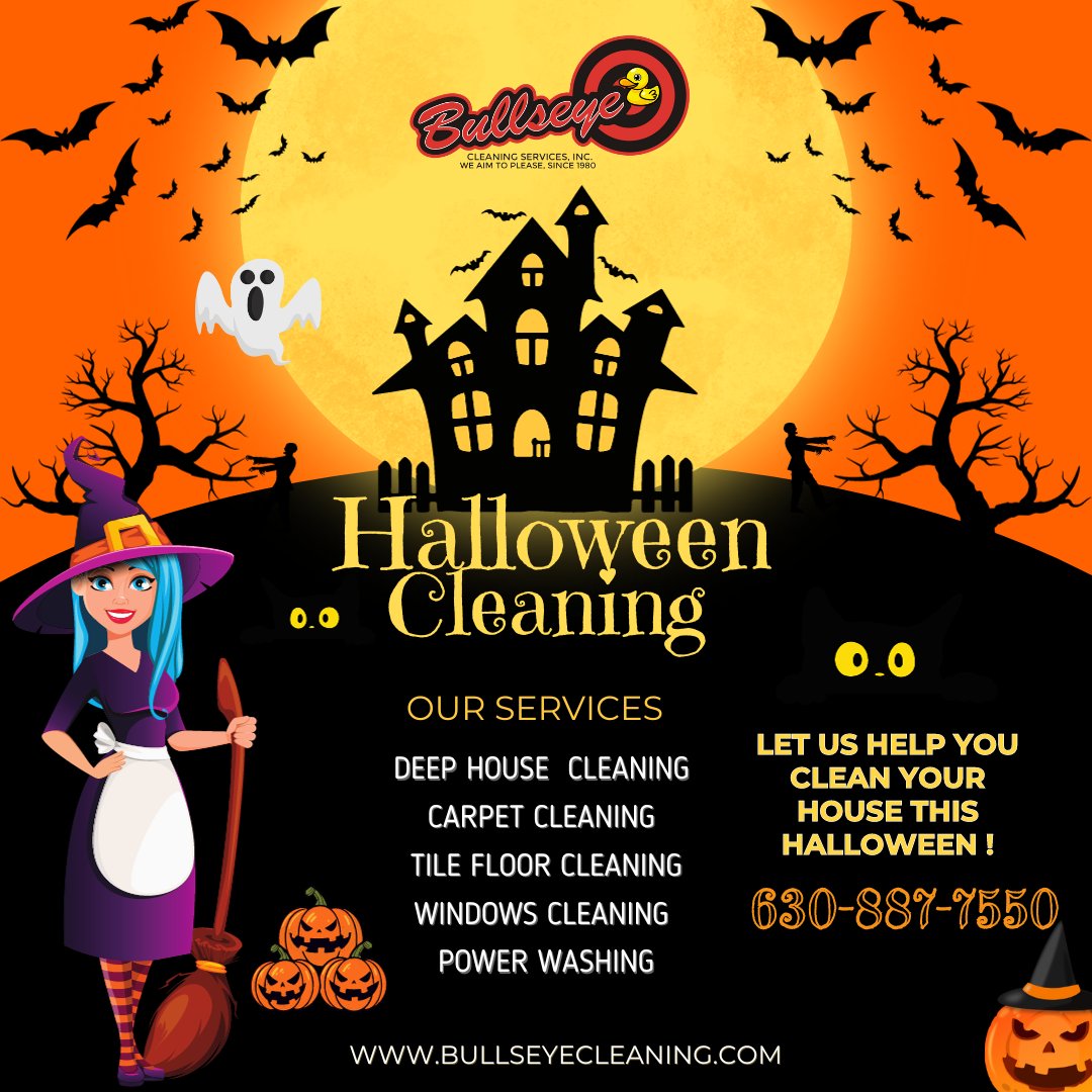 Don't let messy home Scare your guest this Halloween! Enjoying your Halloween party and don't worry for the cleaning our professional technicians are ready for get your home cleaned. Call us (630-887-7550) #housecleaningservice #deephousecleaning #movingcleaning