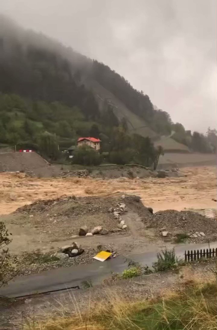 Mud was flying into the air in Chamoson, Switzerland on Tuesday. Swiss media reported there were strong storms before a mudslide moved through the area. #Mud #Switzerland