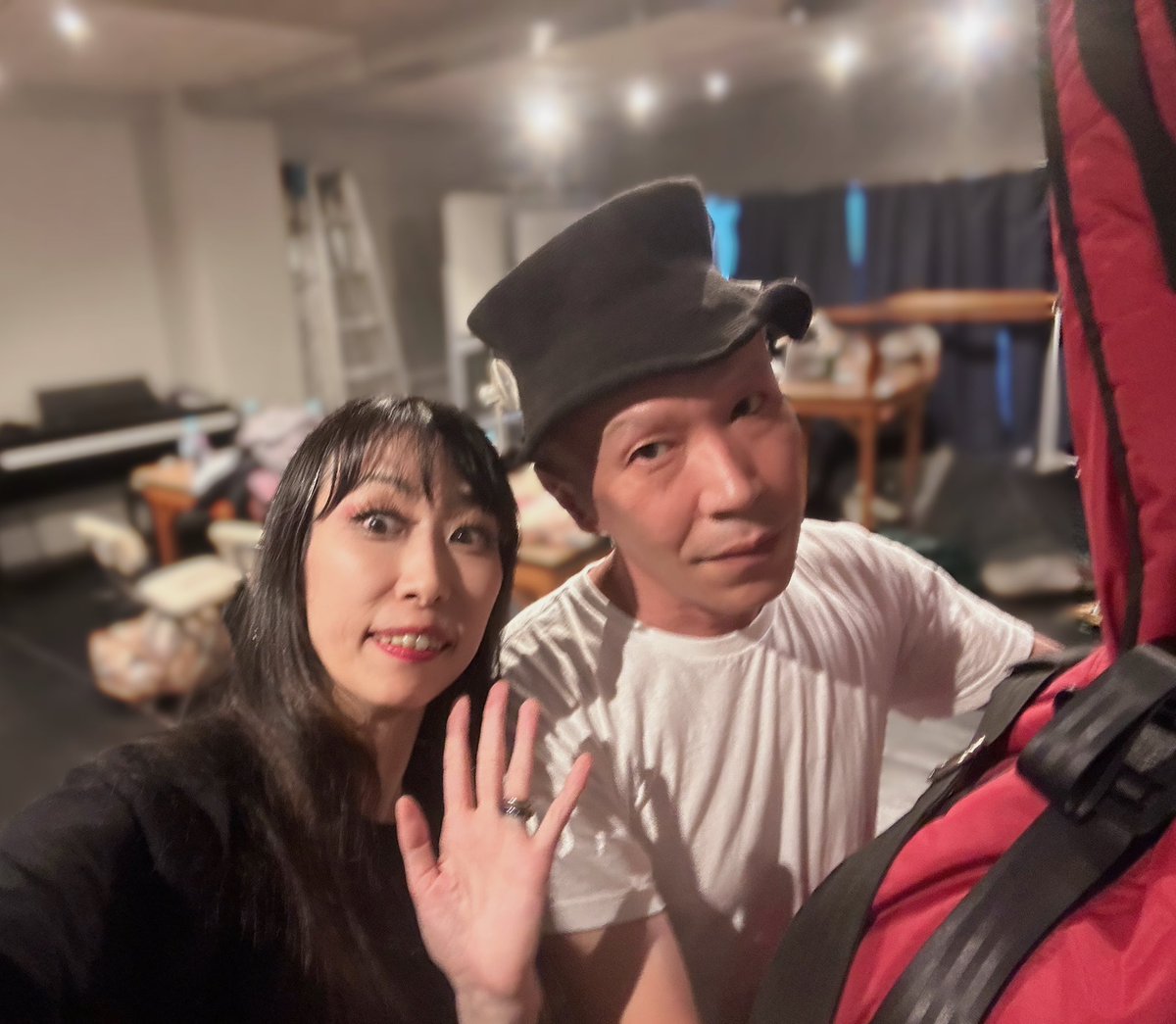 #糸地獄楽 森ようこさん!#Noms リハでの桂太さんとのシーン作りは2人で絵を描くみたいだった。オファーに「やる」って即答してくれて、濃密空間を作ってくれて本当にありがとう。サラジェーンとラストが超絶かっこよかった!ようこちゃんともまた何か作りたい。 共演📸青蛾館×2・SSJ・吉野翼企画