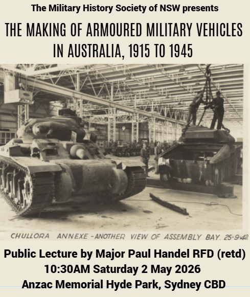 PUBLIC LECTURE - ANZAC MEMORIAL HYDE PARK, SYDNEY Our war effort during the world wars and in between included a domestic manufacturing sector that produced armoured vehicles, like tanks. More details here: militaryhistorynsw.com.au/activities/nex… #NSW #History #Sydney