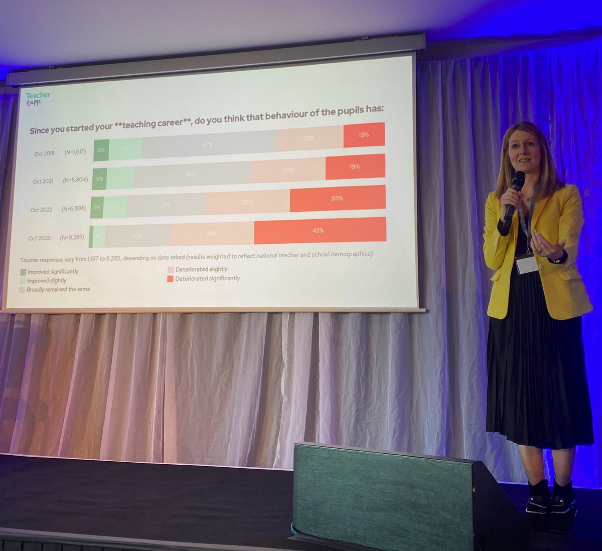 ‼️ 42% of teachers said behaviour of pupils has deteriorated significantly in 2023. It was 13% in 2018. 💭 any thoughts? 🤔 #oeMATs @miss_mcinerney #TeacherTappChat