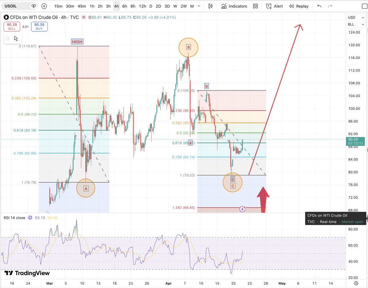 THERE COULD BE TROUBLE AHEAD #OIL appears to have completed a contracted flat correction, where - Wave A moves against the main trend (initial pullback) Wave B retraces upward but fails to make a strong new high Wave C moves down again but does NOT break far below Wave A OR