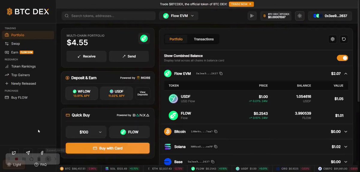 The best place to trade, earn, discover, and launch on Flow EVM (@flow_blockchain). #onFlow #FlowEVM - Multi-chain Portfolio Management - Swaps on Flow and cross-chain trades from Bitcoin, Solana, Base, & Cronos - Earn with @MORE_DeFi - Protected Token Launches (Coming soon)