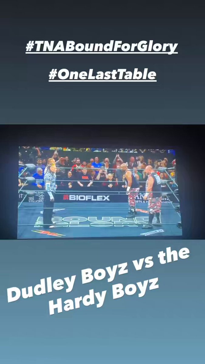 The first time I seen the Hardy’s and the Dudley’s fight in a tables match I was 16 years old today I’m 41 and I’m so grateful I was able to see the last👏🏾👏🏾👏🏾 Thank you both for the memories #TNABoundForGlory #OneLastTable