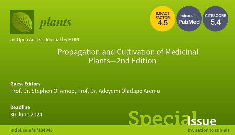 📢 Exciting News! 💡 We announce our Special Issue: "Propagation and Cultivation of Medicinal Plants―2nd Edition"! 🗓️ Submission Deadline: 30 June 2024 📌 Call for Papers: mdpi.com/journal/plants… #callforpapers #callforsubmissions #openaccessjournal #medicinalplants