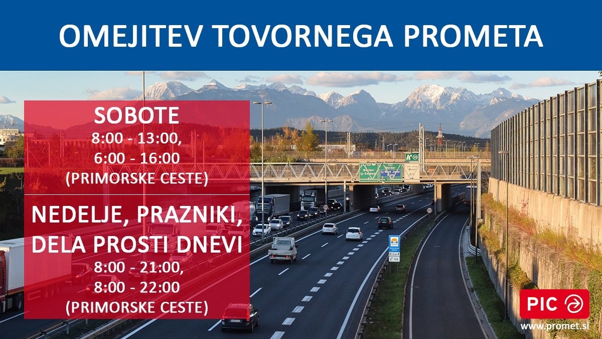 #OPOZORILO ‼️ Od sobote, 27. junija, do prvega konca tedna v septembru, 6. septembra, velja omejitev tovornega prometa v času turistične sezone (na sliki). Več: ▶️ bit.ly/3eq9rDM