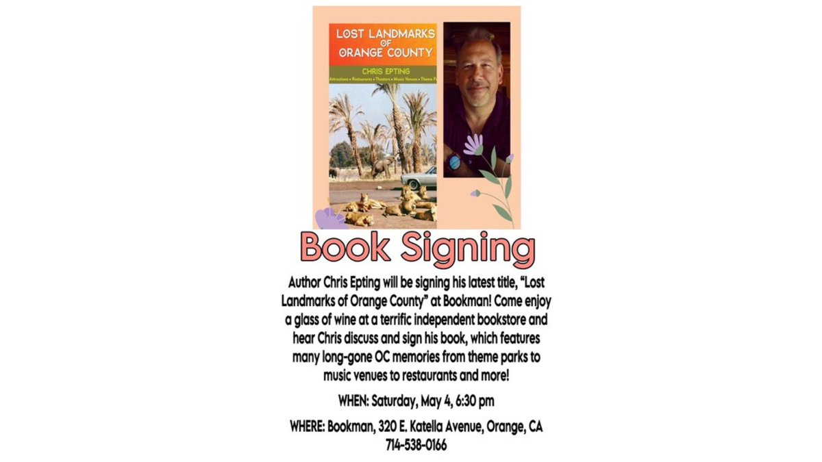 Join author @chrisepting at @bookman in Orange, CA at 6:30 on May 4, for a discussion and book signing of Lost Landmarks of Orange County! #OrangeCountyCA #californiahistory #booktalk #booksigning