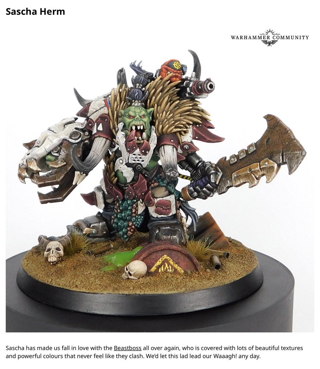 #ThrowbackThursday & #Orktober all in one post 😀 My ‘Beastboss’ was featured in an end of year article celebrating ‘A year of Warhammer 2021’. I had fun painting this & creating the base 🖌 Waaagh!! #WarhammerCommunity #PaintingWarhammer #warhammer40k