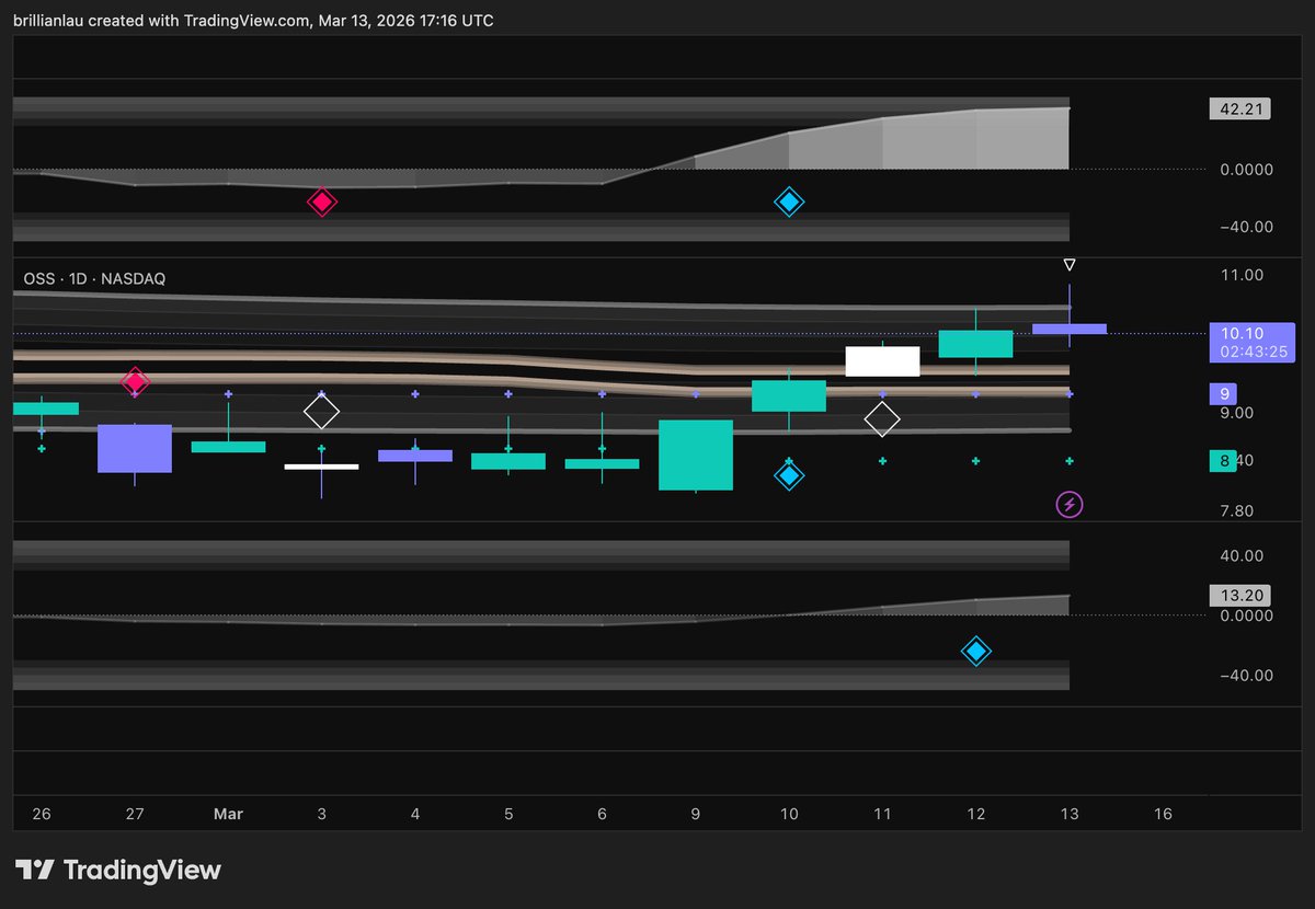 $OSS #OSS third pane waiting to flip blue as well.. if we can break the immediate Fibonacci hurdle, the 52-week high price is feasible 👀
