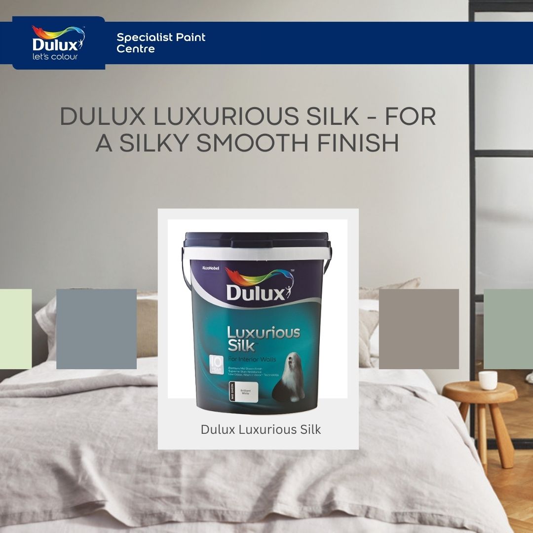 Dulux Luxurious Silk is The ideal choice for interiors of style and distiction. Transform your wall with long lasting luxury! Low odour premium interior wall paint with a mid sheen finish and supreme stain resistance. #paintedwalls #paintpalette #dulux #duluxpaint #duluxcolour