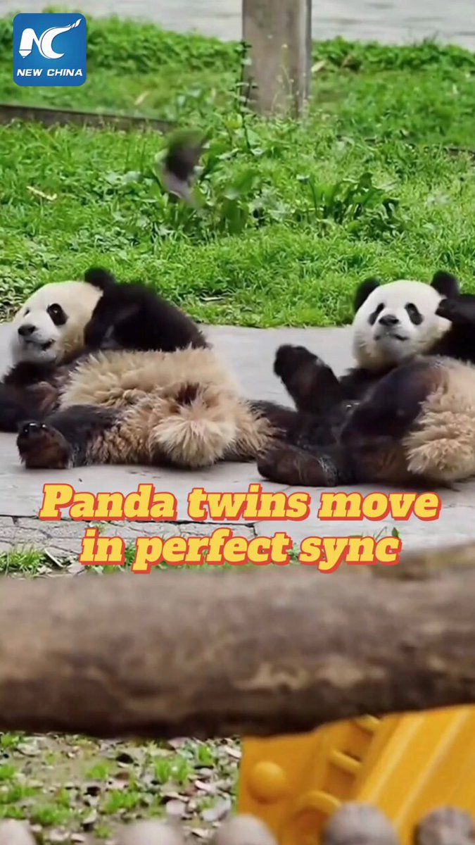 Pandas in perfect sync! Effortlessly synchronized actions showcase an incredible bond between these superstar panda twins in southwest China's Chongqing. #China #Panda