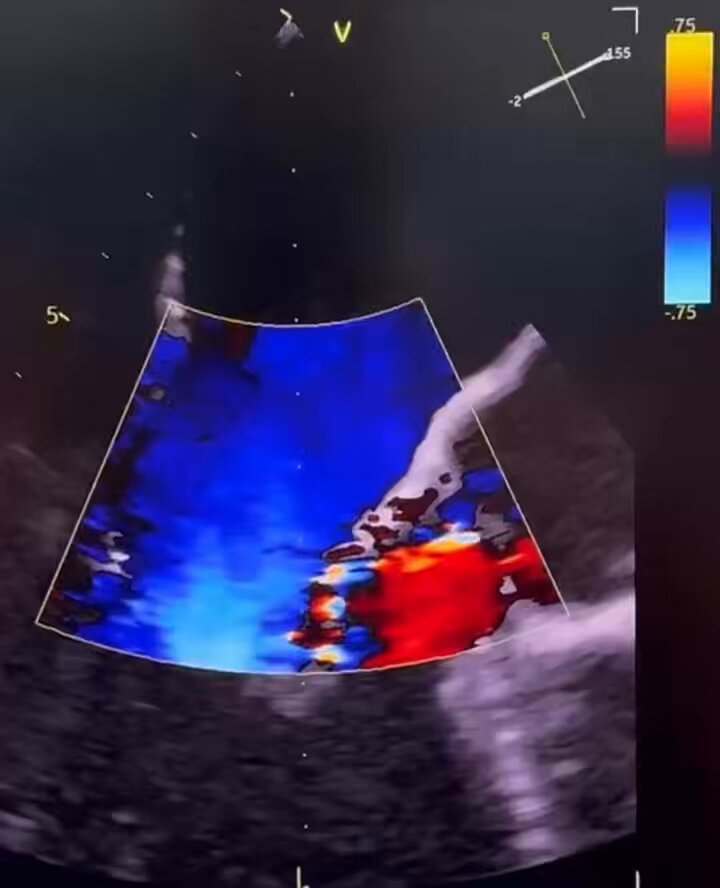 Degenerative MR with anterior leaflet prolapse & only 5mm posterior leaflet. Pascal ACE: 1st device at A2-P2, 2nd medial at prolapse site. Trivial residual MR. Would you have done the same? #MitralRepair #PascalACE #StructuralHeart #TMVr #HeartTeam #TEER