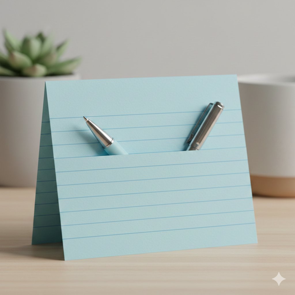 A pastel blue note card with a pen hidden behind the lines — Gemini w/ Nano banana 🏷️ #succulent #pastelBlue