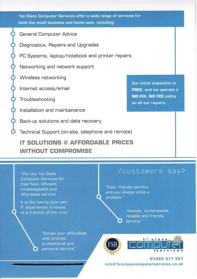 🛠️ Got a slow or faulty PC? 1st Class Computer Services in Surrey offers expert repairs, upgrades & IT support — fast and reliable 💻 📍 Visit us: 1stclasscomputerservices.co.uk #PCRepairs #ITSupportSurrey #ComputerServices #1stClassFix #TechHelpUK