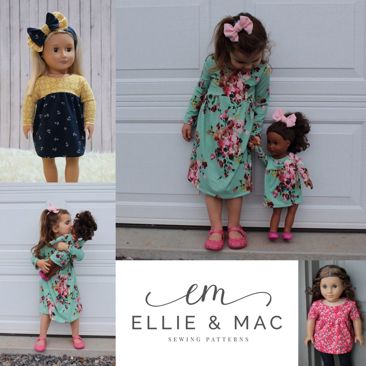 The I love the 90's Doll Dress Pattern has released!! This pattern is a throwback and will have your doll looking oh so cute! Plus, it's the perfect scrapbuster!! Check it out today at Ellieandmac.com! #ellieandmac #pdfpatternrelease #sewingfordolls #dollpatterns