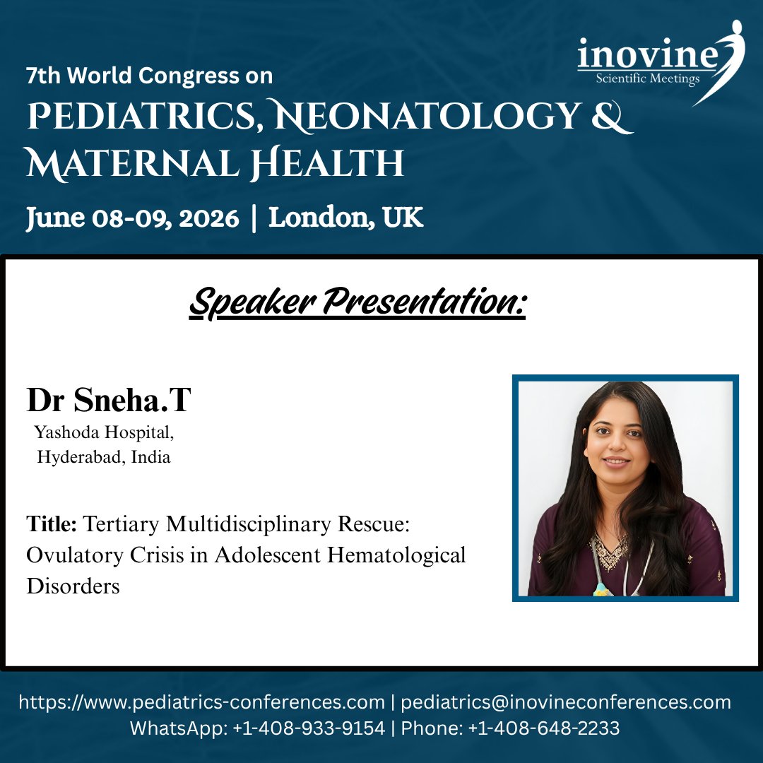 7th World Congress on Pediatrics, Neonatology & Maternal Health 📅June 08-09, 2026 📍London, UK 🎤 Featured Speaker: Dr. Sneha T Yashoda Hospital, Hyderabad, India 🌐 pediatrics-conferences.com #Pediatrics #Neonatology #MaternalHealth #CME #CMEPoints #inovineconferences