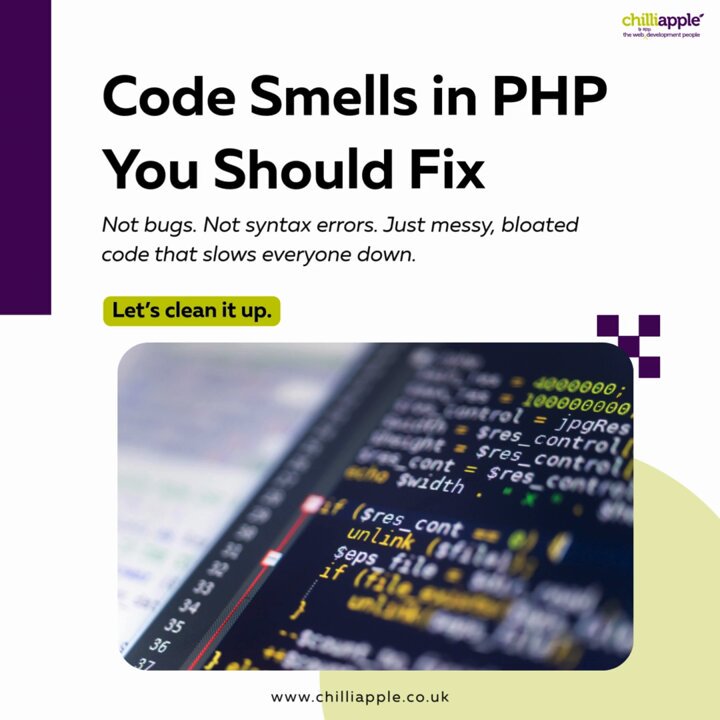 Code smell โ error โ but it slows you & your team down. From long methods to tight coupling, here are 5 PHP code smells + how to fix them ๐ง Got a pet peeve we missed? Drop it ๐ #PHPDev #CleanCode #LaravelTips #Refactoring #chilliapple
