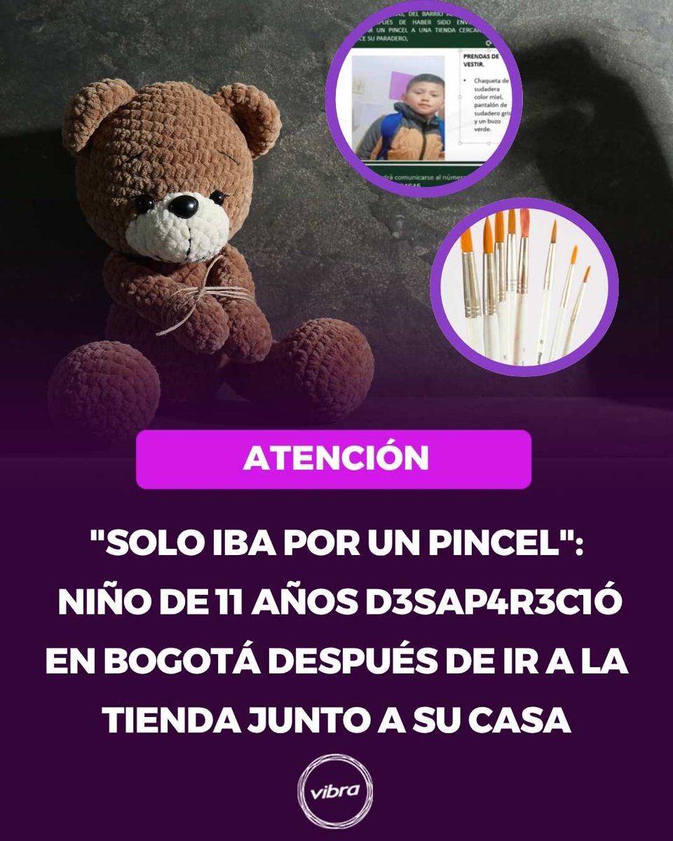 Los padres hacen un llamado ante las extrañas circunstancias presentadas en el caso y piden mayor diligencia de las autoridades. Esto se sabe 😱 👀 #Niño #pincel #Tienda #desaparición #Bogotá Detalles aquí: vibra.co/actualidad/nin…