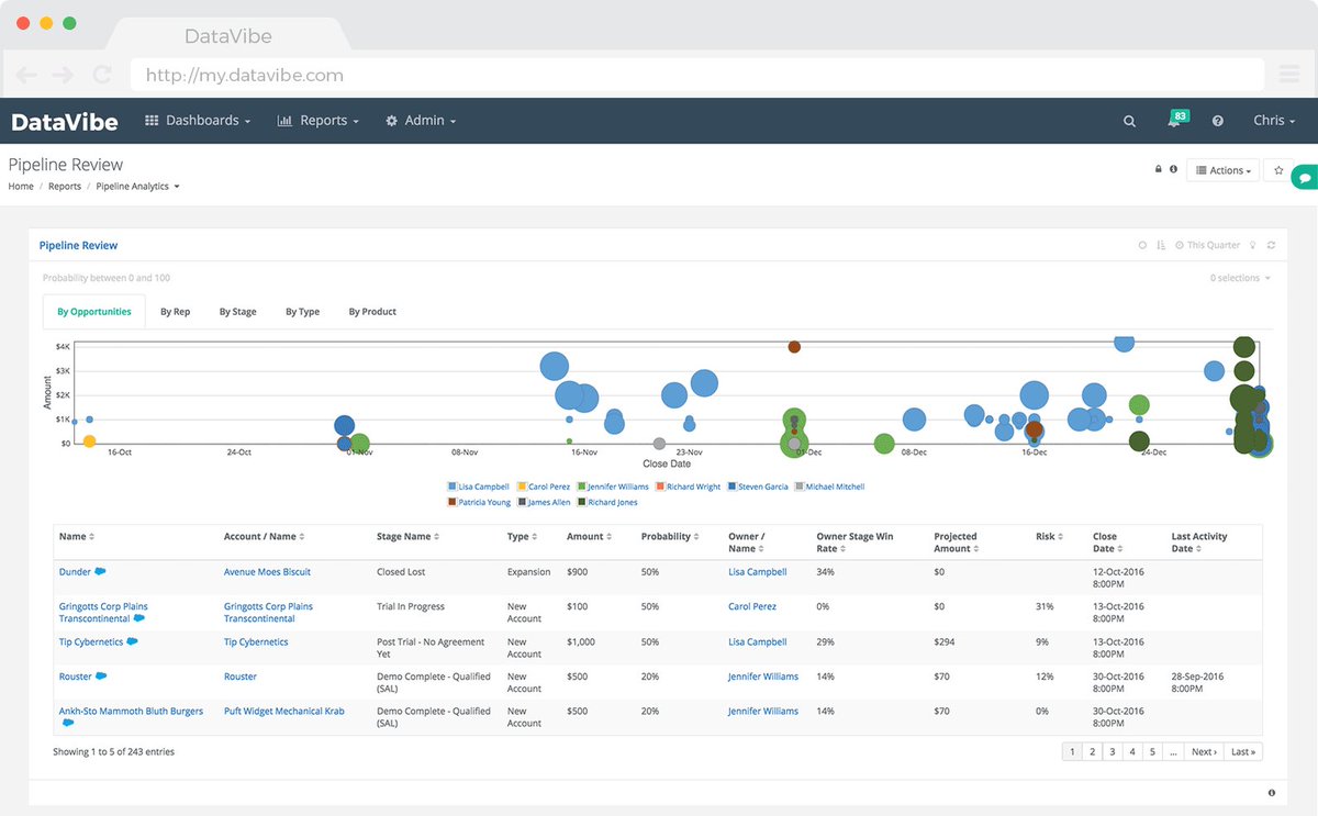 Don’t get bogged down by your numbers. DataVibe showcases dashboards and reports that make sense. #pipelinereview #forecasting #sales