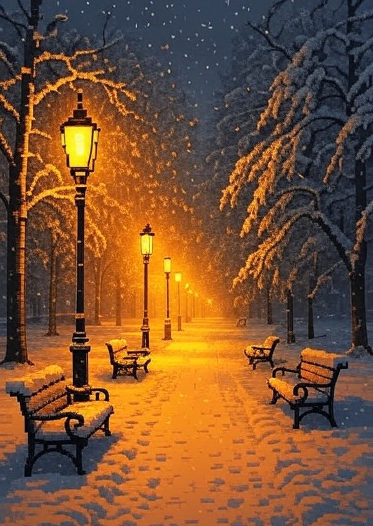 In the hush of falling snow, where lanterns weave dreams from frost and fire. ❄️🕯️ #WinterWhispers #PixelMagic
