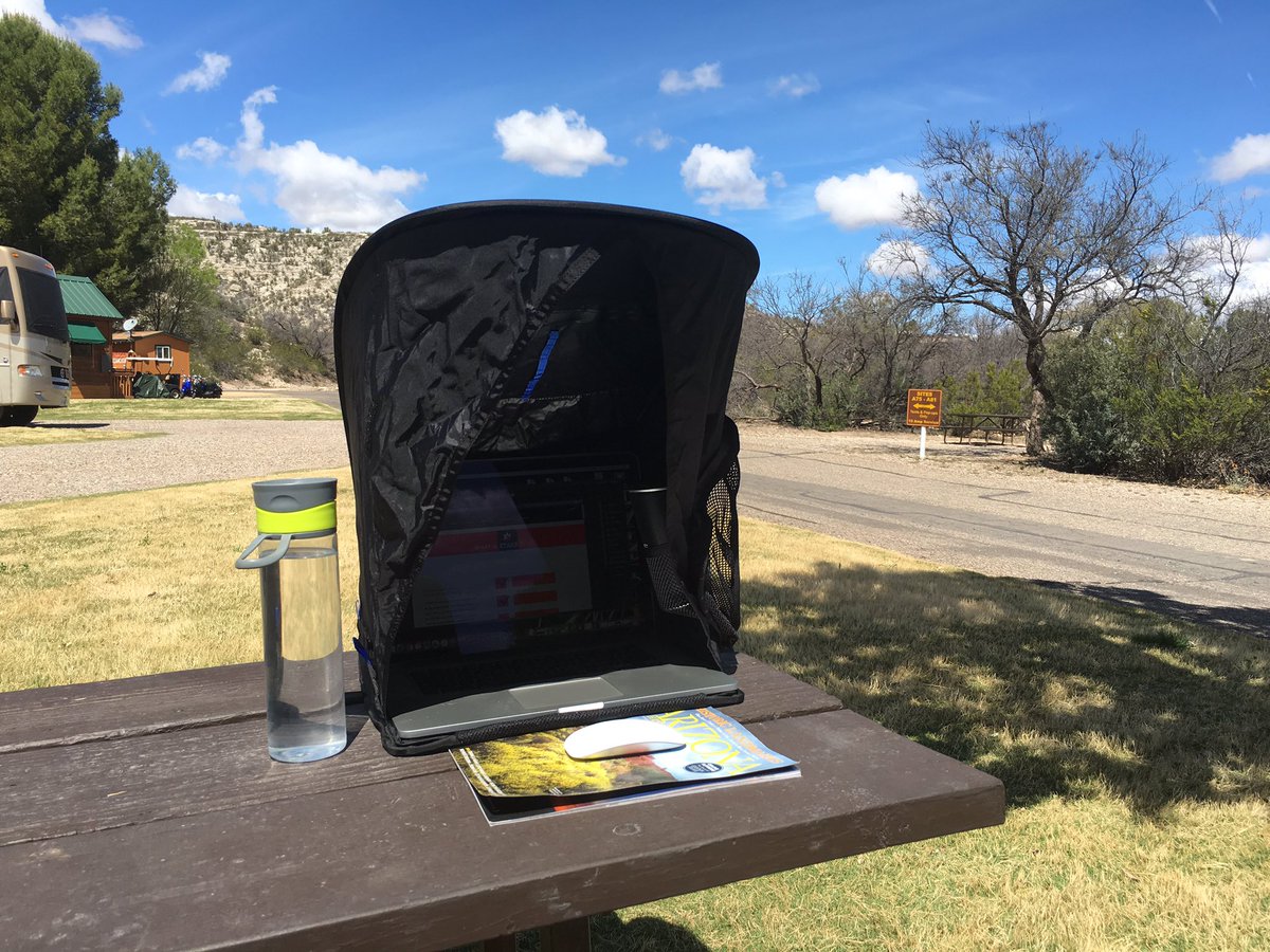 #workspace today. It rained this wknd, so chairs on side patio are wet. Got out my #pixelscreen by @thinkTANKphoto