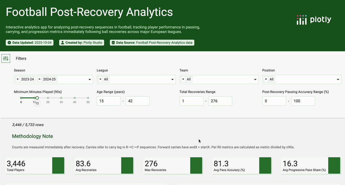 Took part in @plotlygraphs Vibe-a-thon over the weekend and here is my submission. A dashboard for post-recovery statistical analysis with interactive scatter plots, bar graphs and percentile graphs. Link: …ff8-4182-9d8f-41e14d602a74.plotly.app #PlotlyStudio #plotlyStudio
