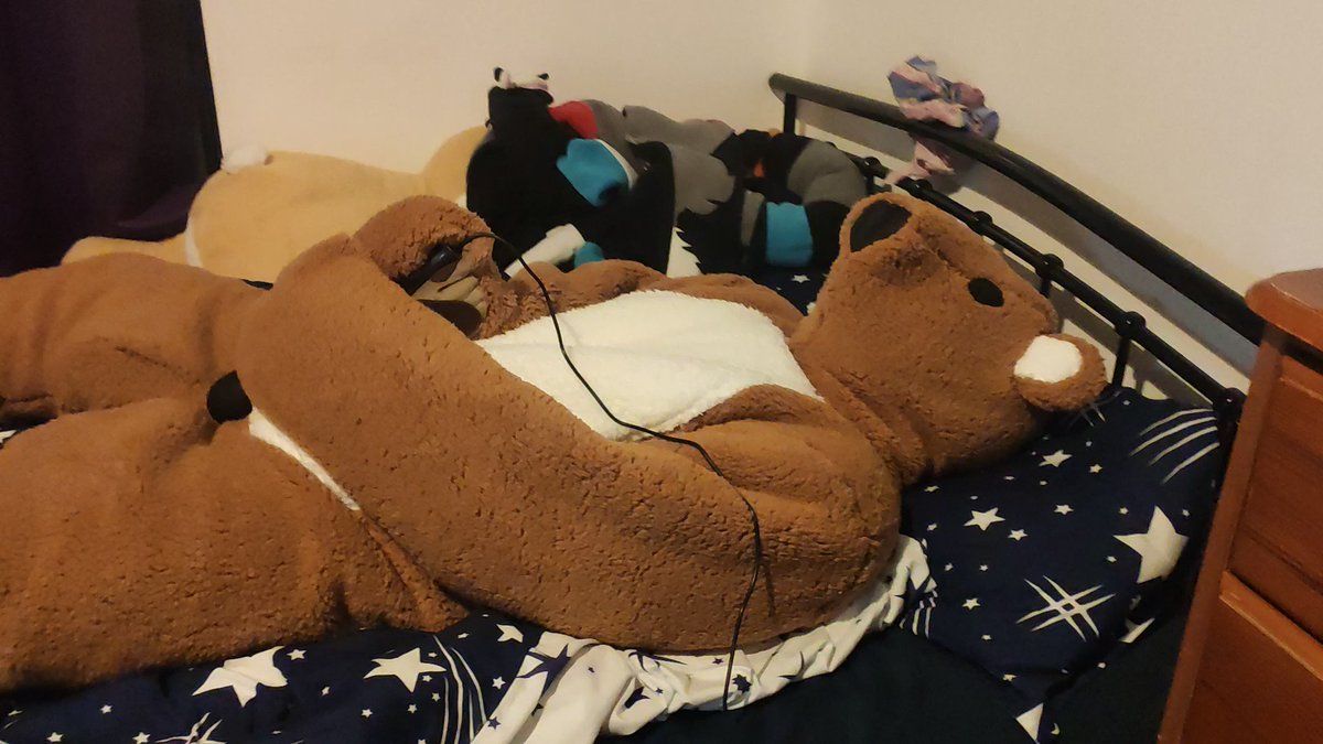 Hey look, a soft bear plushsuit. Time for you to get inside and be surrounded by all that softness. And don't worry, there won't be any of that pesky "getting out". Made by kimbersboutiquellc.com - highly recommended. #plushsuit #soff #plushbear #lockable