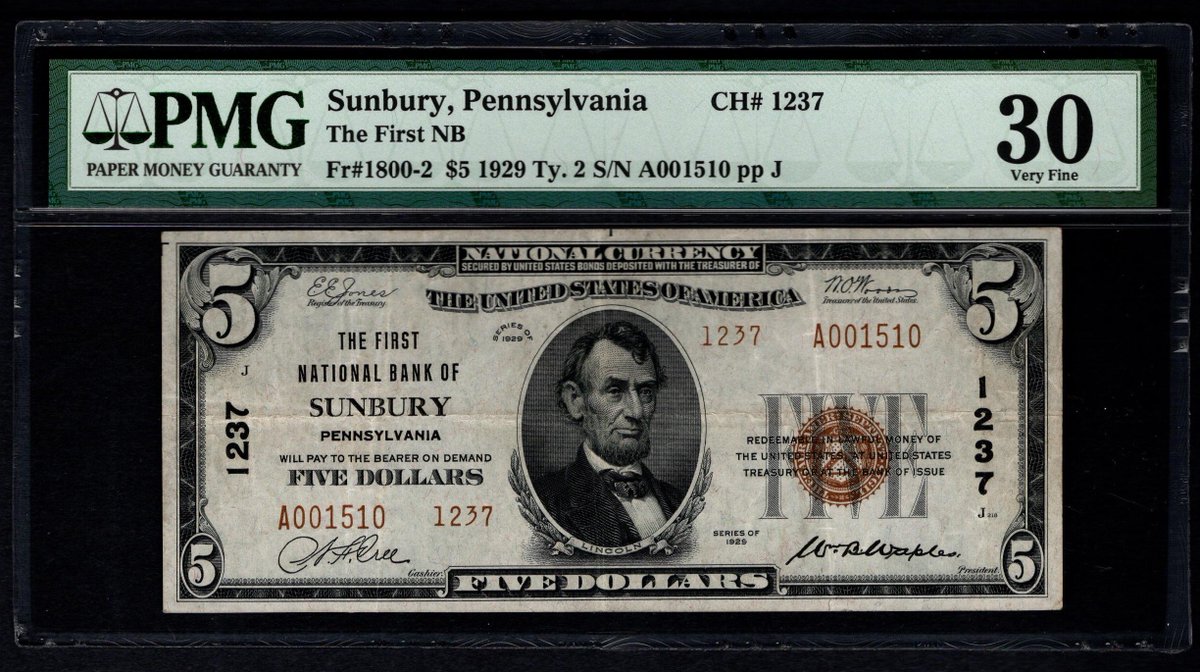 NEW LISTING! unitedstatespapermoney.com/products 1929 $5 Sunbury PA National Currency #Sunbury #Pennsylvania #pmgnotes #currency #hobby #collecting #vintage