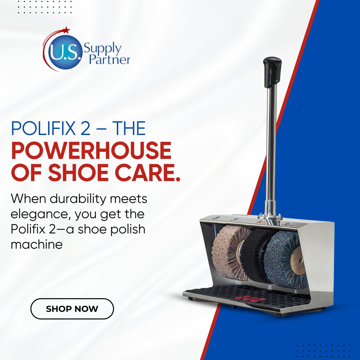 The Polifix 2 isn’t just a shoe polish machine — it’s an icon of durability and design. Built for high-traffic areas like shopping centres and luxury hotels, this heavy-duty machine offers: ---- 🛍️ ussupplypartner.com/product/polifi… . . . . #polifix2 #shoepolishmachine #durabilityanddesign
