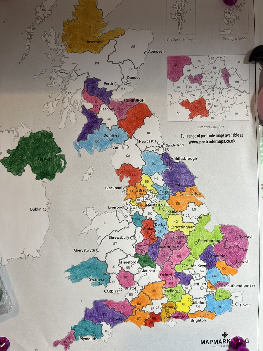 📍UK POSTCODE MAP UPDATE📍 I am terrible at colouring 😳😭 but my #postcodemap is coming along nicely 🎨 Is your postcode coloured in? Who else is filling in a sales map? #SmallBusiness #shopsmall #etsy #giftideas #MHHSBD #QueenOf #womaninbizhour #inbizhour #YourBizHour #ukbiz✏️