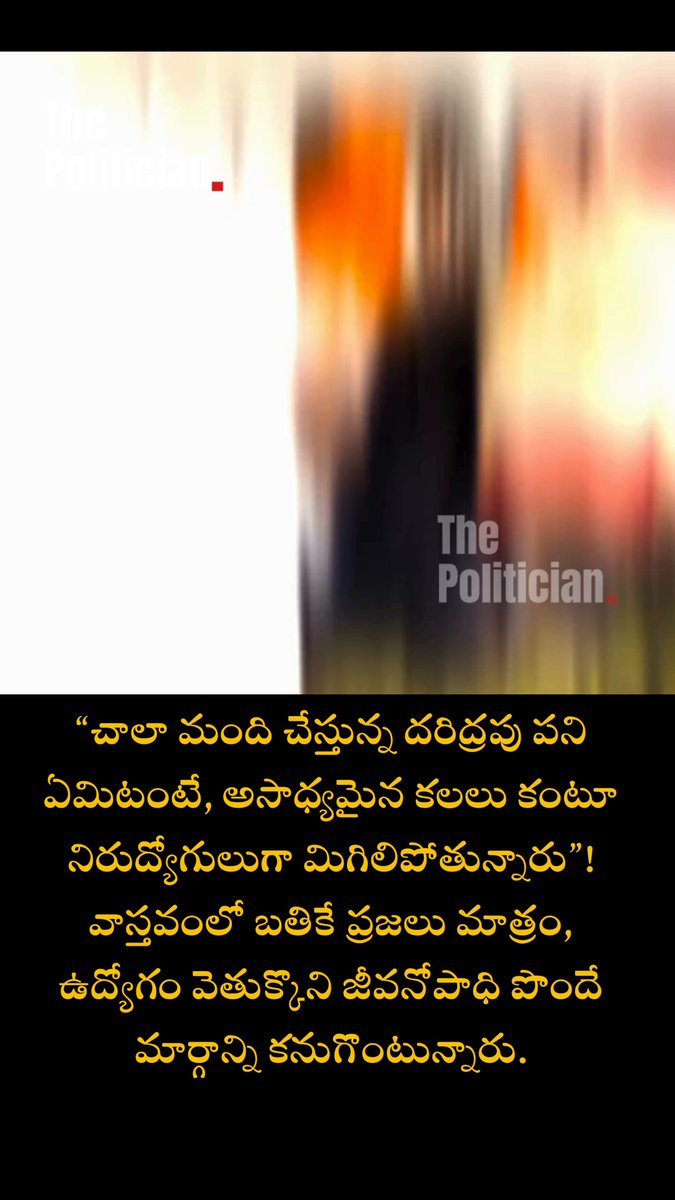“చాలా మంది చేస్తున్న దరిద్రపు పని ఏమిటంటే,అసాధ్యమైన కలలు కంటూ నిరుద్యోగులుగా మిగిలిపోతున్నారు”! వాస్తవంలో బతికే ప్రజలు మాత్రం, ఉద్యోగం వెతుక్కొని జీవనోపాధి పొందే మార్గాన్ని కనుగొంటున్నారు. #realitycheckneeded #chasingdreamswisely #powerofpracticality #lifeandlivelihood #workforit…