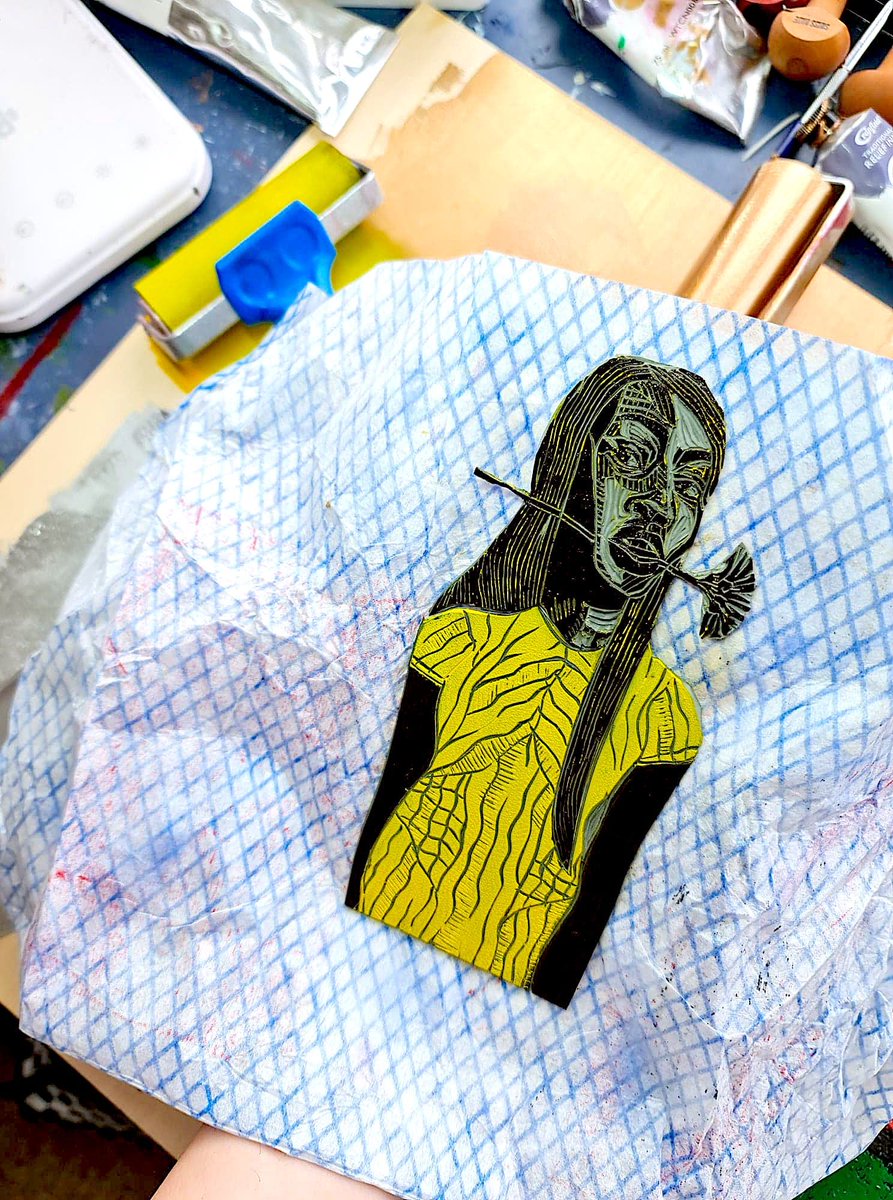 She is my entry for this week's #printersolstice printmaking prompt which is "On the line". I entered this lady, as if she were a real person, she would have put absolutely everything on the line last year to stand up for her rights. And actually, she has to do that everyday too.