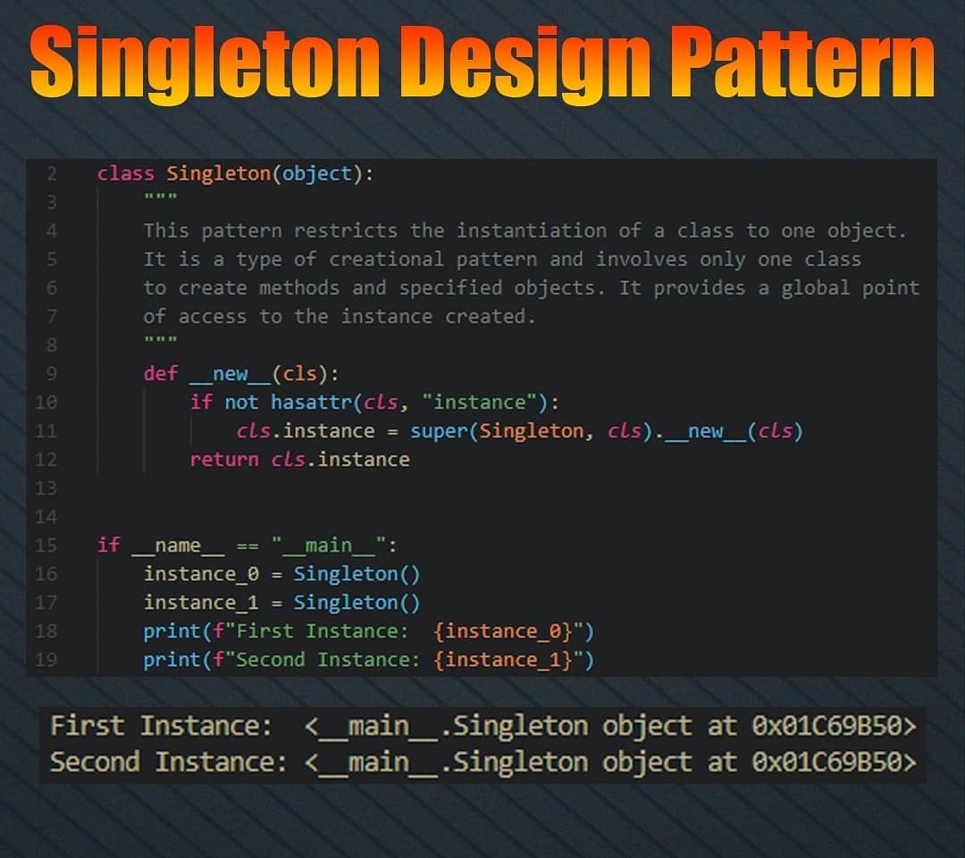Singleton Design Pattern. Comment Your Thoughts.. #programming #programminglife #programmingmames #python #pythonprogramming #pythoncode #pythonlearning #developer #development #asterisminfosoft #webdeveloper #tech #softwaredeveloper #dev #devops #programmingisfun