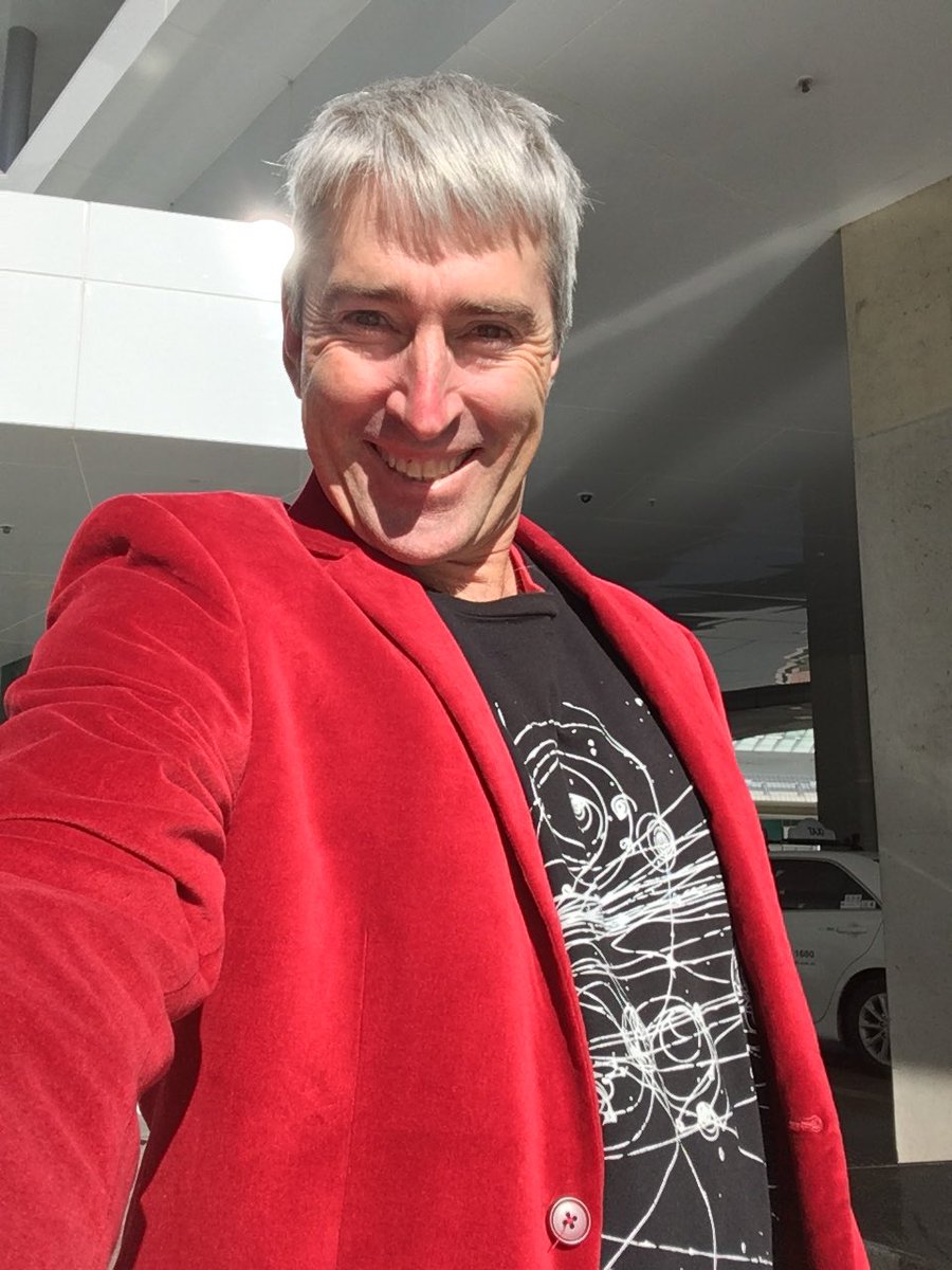 Reunited with the famous red jacket I still can’t believe Errol from @FLEETCentre had a spare red velvet jacket to lend me for my Melbourne #pubphysics gig @ausphysics @ARC_OzGRav @excitonscience