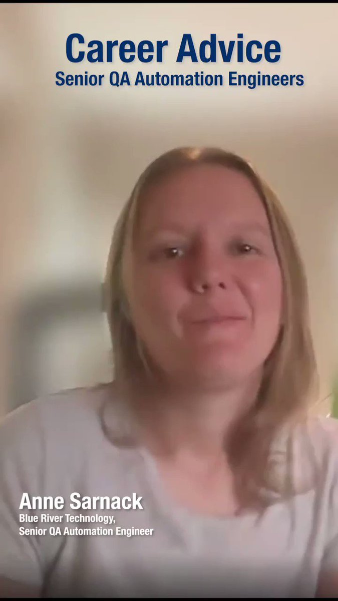 Listen to this great career advice from Anne Sarnack, #BlueRiverTech Senior QA Automation Engineer! Discover valuable insights and tips to level up your professional journey. #CareerAdvice #QAAutomationEngineer