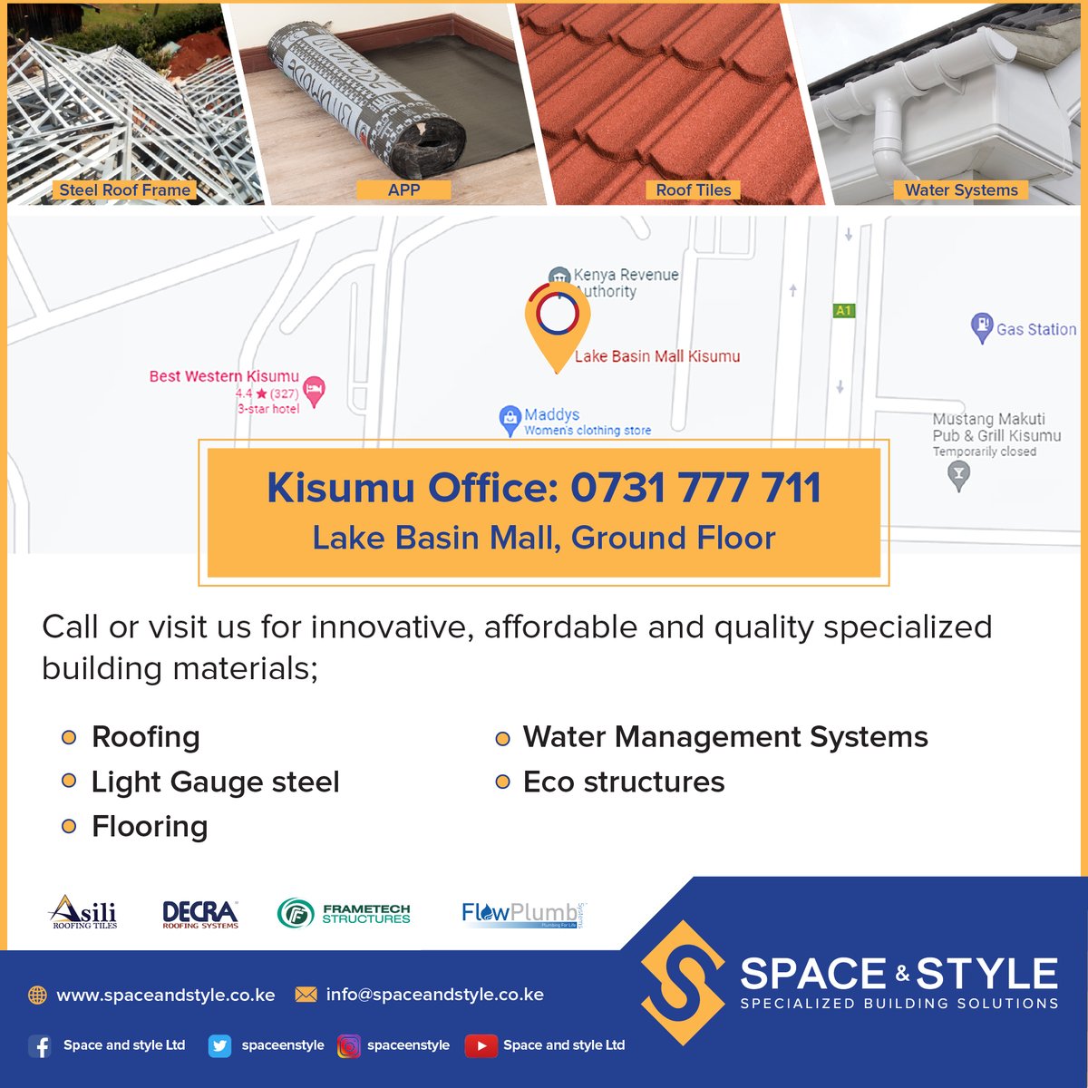 Visit us in Kisumu for affordable, quality & innovative building solutions. Our Asili stone coated roofing tiles give your home a fine finish & save you significant costs in sourcing and installation. KEBS & ISO 9001: 2015 certified. #Qualityroofing #Roofing, #Flatroof