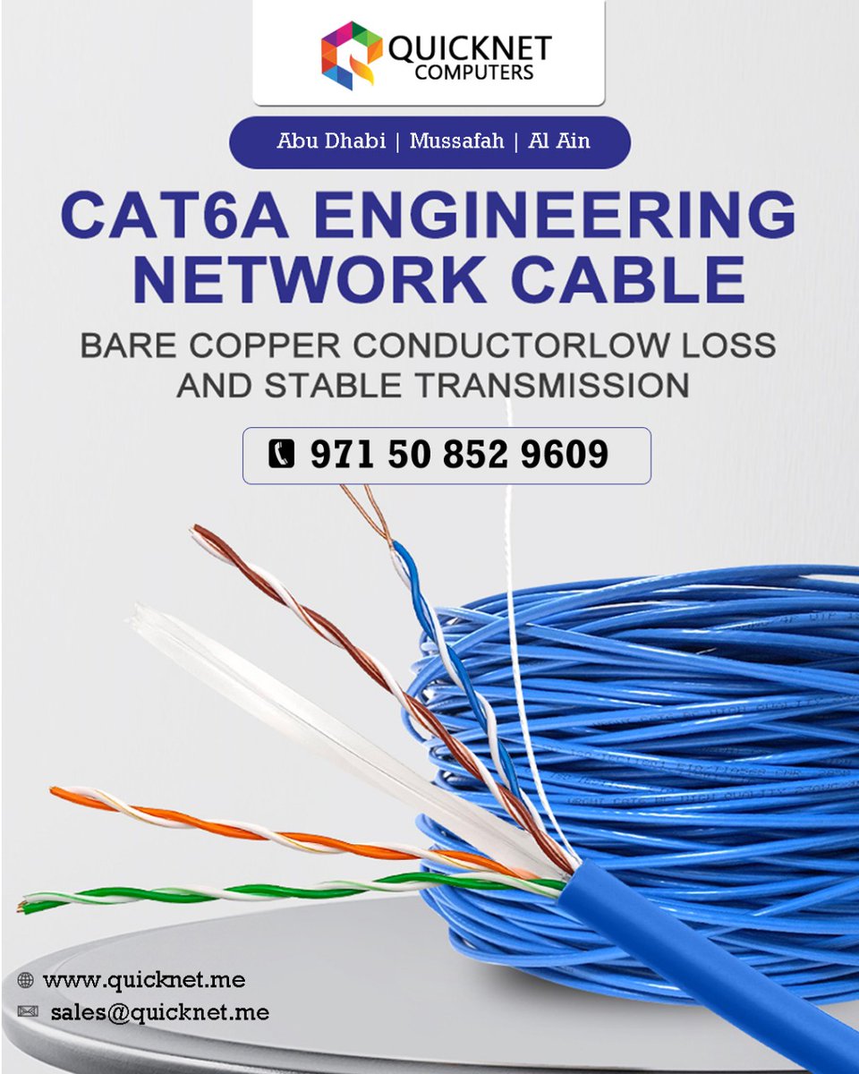 Network cables are used to connect and transfer data and information between computers, routers Contact Now : +971 50 852 9609 Website :quicknet.me #quicknetcomputers #quicknetabudhabi #quicknetsecuritysolutions #netorkcabling #networksystem #neyworkcablingservices
