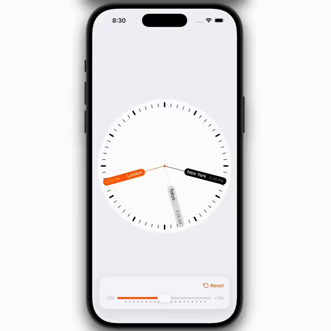 🕒 Made a circular world clock you can slide through, super smooth thanks to Reanimated + Expo. Got inspired by the Ora app #ReactNative #Expo
