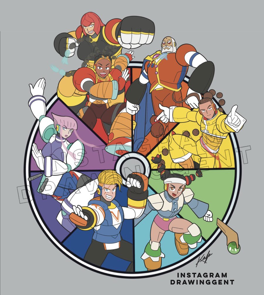 All my StreetFighter robots: Alpha up to V. Funny that I’ve done the color wheel pattern similarly in the last year. Here’s the color wheel treatment. See reply on my initial design version. #StreetFighter #reploid #megamanx