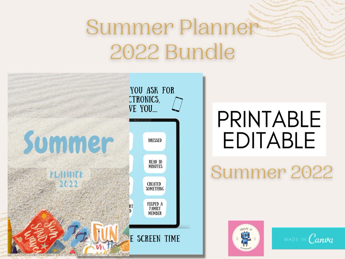 Printable editable Summer Planner bundle 2022, summer calendar, screen time checklist daily routine chore summer goals bucket list goals etsy.me/3NbBQ20 #rainbow #kidschorechart #responsibilitychart #weeklychorechart #printableroutine #chorechart #editablechore