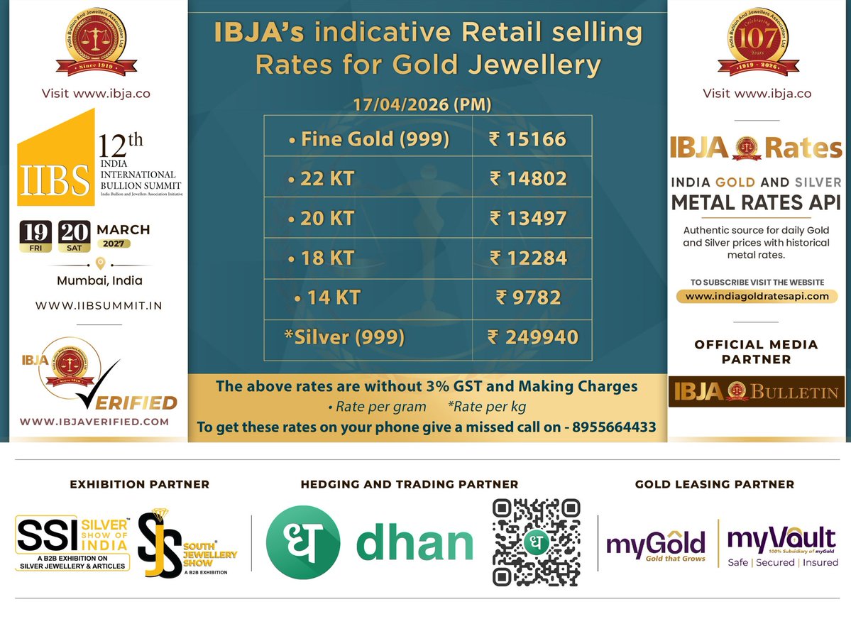 #indicative #Retail Selling #Rates for #Jewellery To get these rates on your phone give a missed call on - 8955664433 For more details contact: Saurabh +91 9004120120 / 022-23426971 / 022-23427459 Follow us on Twitter : bit.ly/3vxezDv Follow us on Instagram :